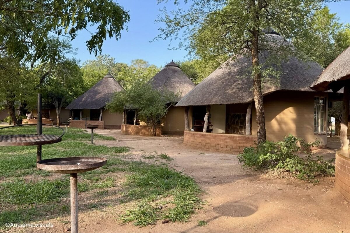 Overnachten kan in restcamps van SANParks, maar ook in luxe lodges waar je ’s avonds bij het kampvuur de geluiden van de bush hoort.